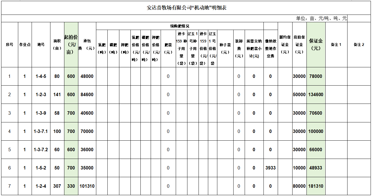 3、部分地塊對(duì)化肥和種子進(jìn)行統(tǒng)一供應(yīng),目前種子化肥價(jià)格未確定,按照北大荒農(nóng)資公司預(yù)估價(jià)格進(jìn)行收取,***終以實(shí)際到貨價(jià)格為準(zhǔn),多退少補(bǔ)。具體金額詳見附表。